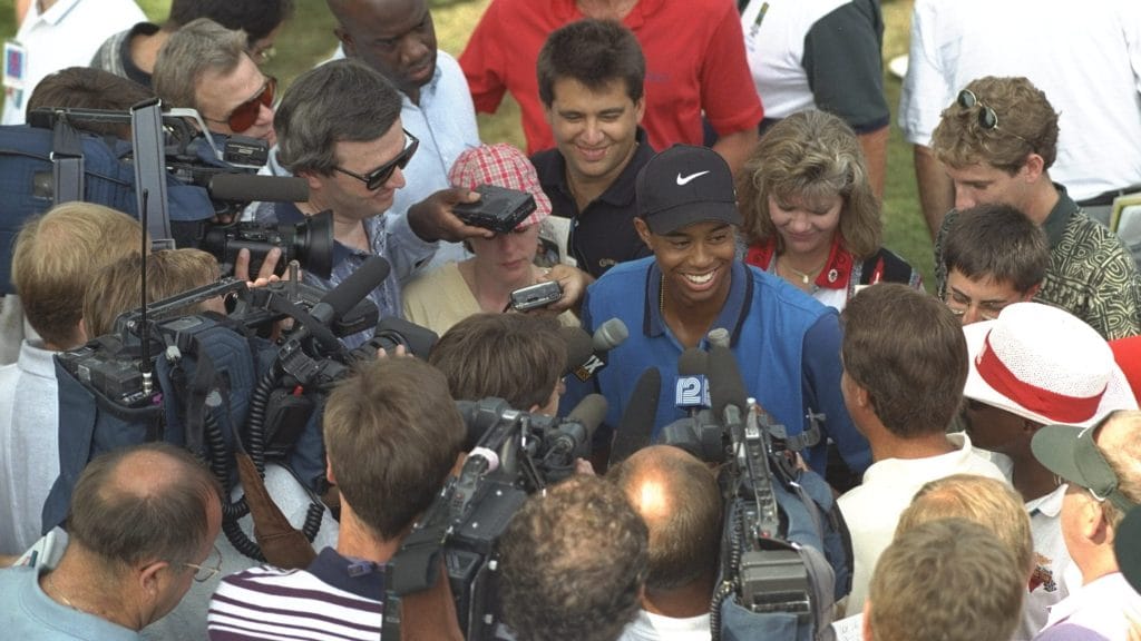 In August 1996, 20-year-old Tiger Woods made his professional debut at the Greater Milwaukee Open with a now-iconic press conference opener, “I guess, hello world, huh?” This marked the beginning of a legendary career in golf, and Nike quickly capitalized on the moment with their “Hello World” ad campaign, which included a three-page spread in the Wall Street Journal and numerous TV ads. Despite finishing 60th in the event, Woods captured the attention of the golf world, setting the stage for his future dominance in the sport.