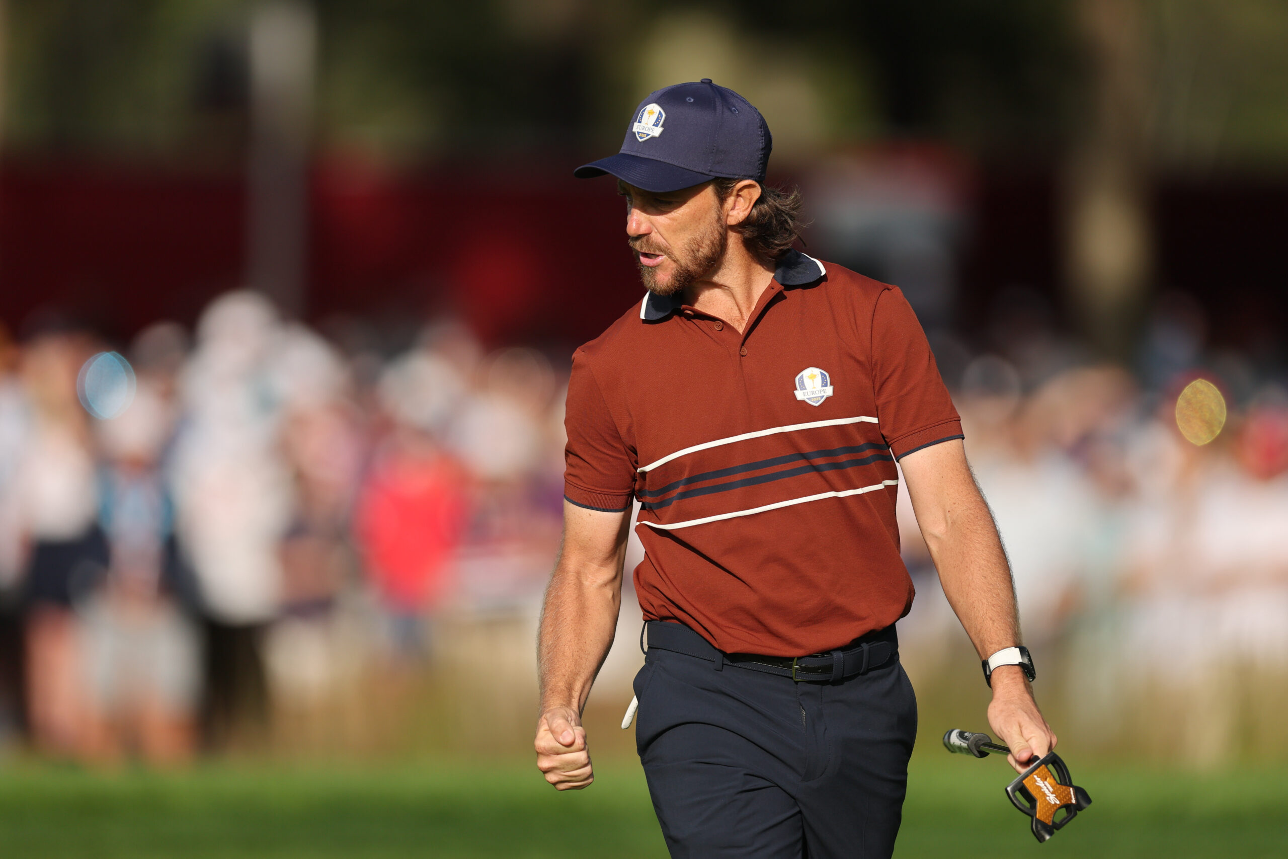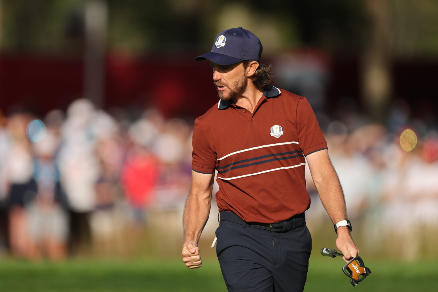 FARMINGDALE, NY – SEPTEMBER 27: Tommy Fleetwood of Team Europe reacts to his putt on the seventh hole during the 2025 Ryder Cup on the Black Course at Bethpage State Park on Saturday, September 27, 2025, in Farmingdale, New York. (Photo by Michael Reaves/PGA of America)